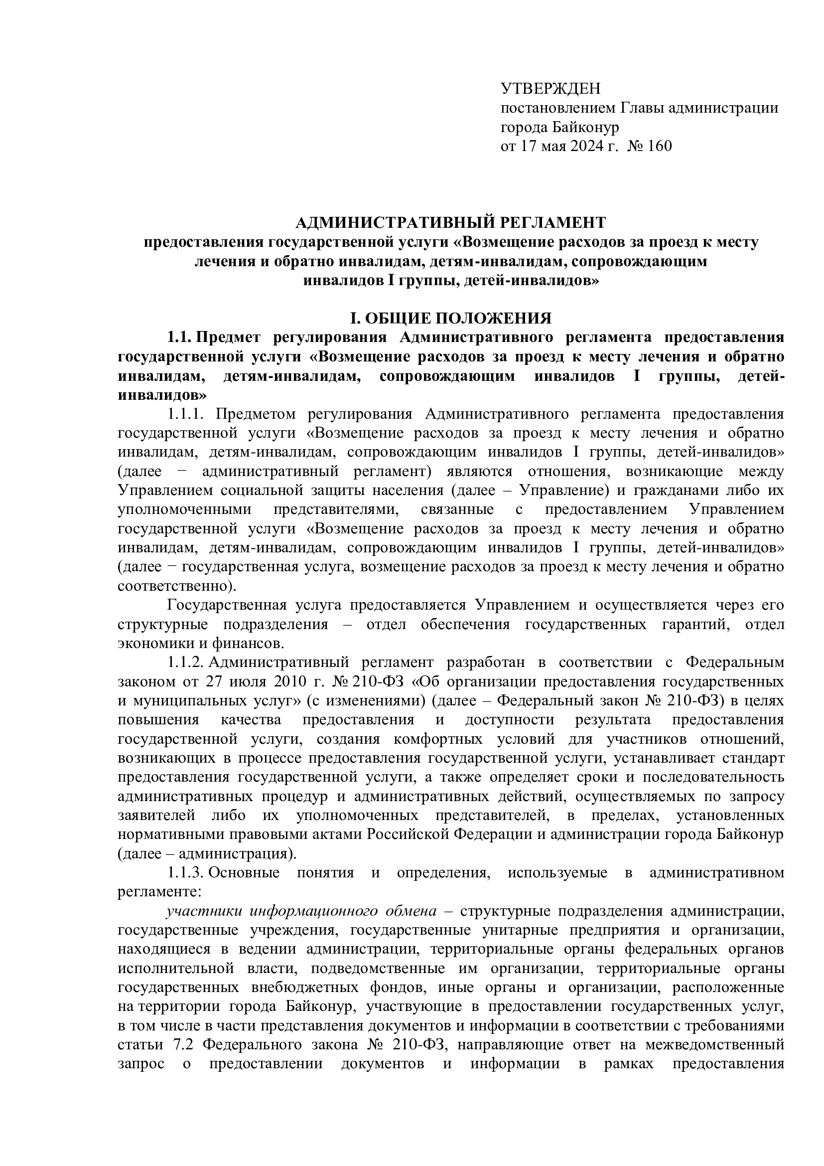 Административный регламент предоставления государственной услуги по возмещению расходов за проезд к месту лечения и обратно инвалидам, детям-инвалидам, сопровождающим инвалидов I группы, детей-инвалидов