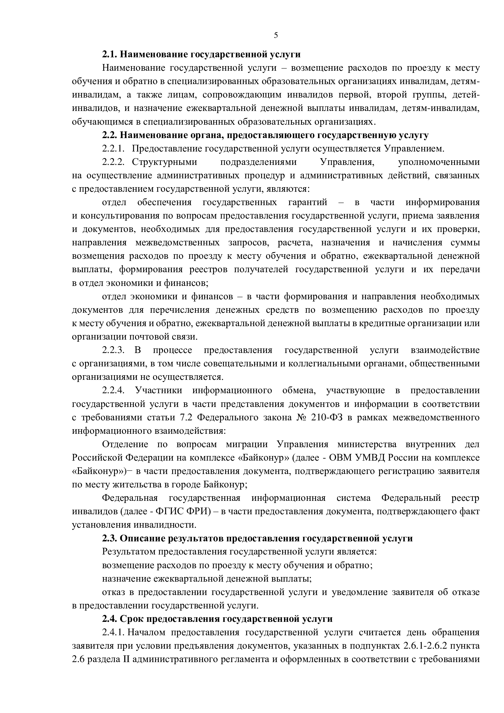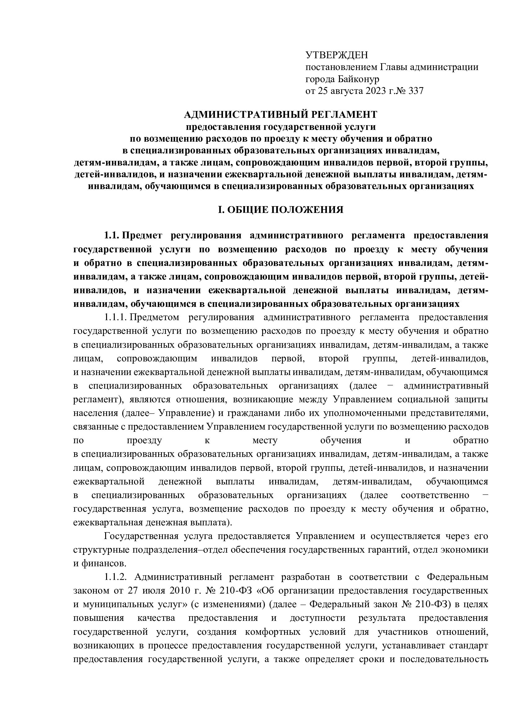 Административный регламент предоставления государственной услуги по возмещению расходов по проезду к месту обучения и обратно в специализированных образовательных организациях инвалидам, детям-инвалидам, а также лицам, сопровождающим инвалидов первой, второй группы, детей-инвалидов, и назначении ежеквартальной денежной выплаты инвалидам, детям-инвалидам, обучающимся в специализированных образовательных организациях