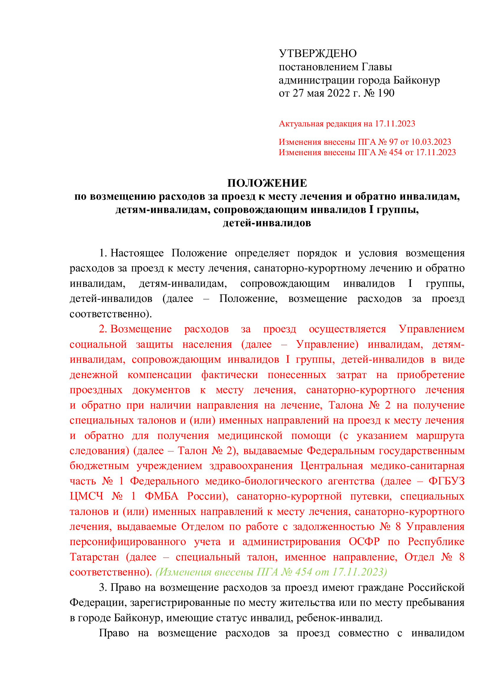 Положение по возмещению расходов за проезд к месту лечения и обратно инвалидам, детям-инвалидам, сопровождающим инвалидов I группы, детей-инвалидов