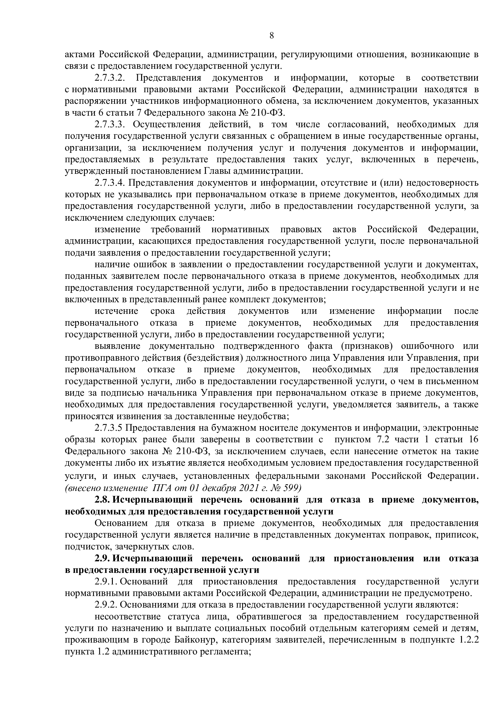 Административный регламент предоставления государственной услуги по назначению и выплате социальных пособий отдельным категориям семей и детям, проживающим в городе Байконур