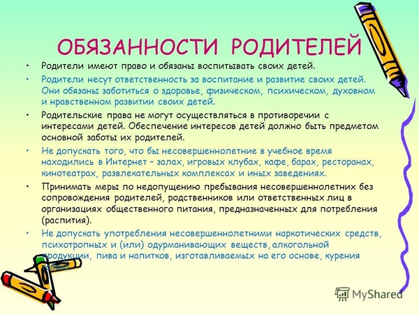 Права и обязанности родителей, а также ответственность родителей за неисполнение или ненадлежащее исполнение своих обязанностей